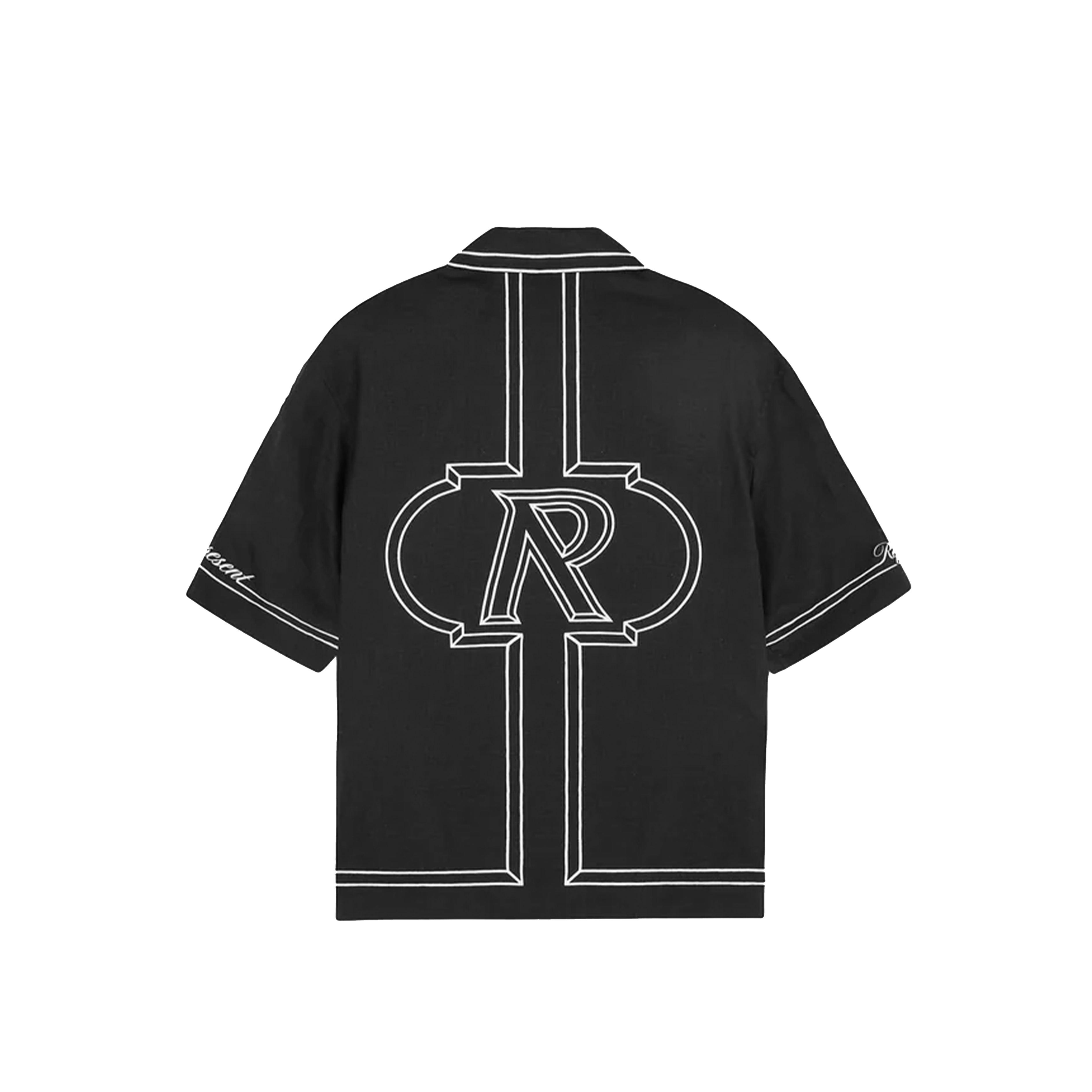Introducing the Border Shirt in Jet Black, updated for the new season with a refined construction and improved fit. Featuring bold contrast embroidered borders and a striking Initial logo across the back, this shirt is built from a breathable linen-viscose blend. Finished with a structured collar and hidden poppers at the placket for a clean front profile.