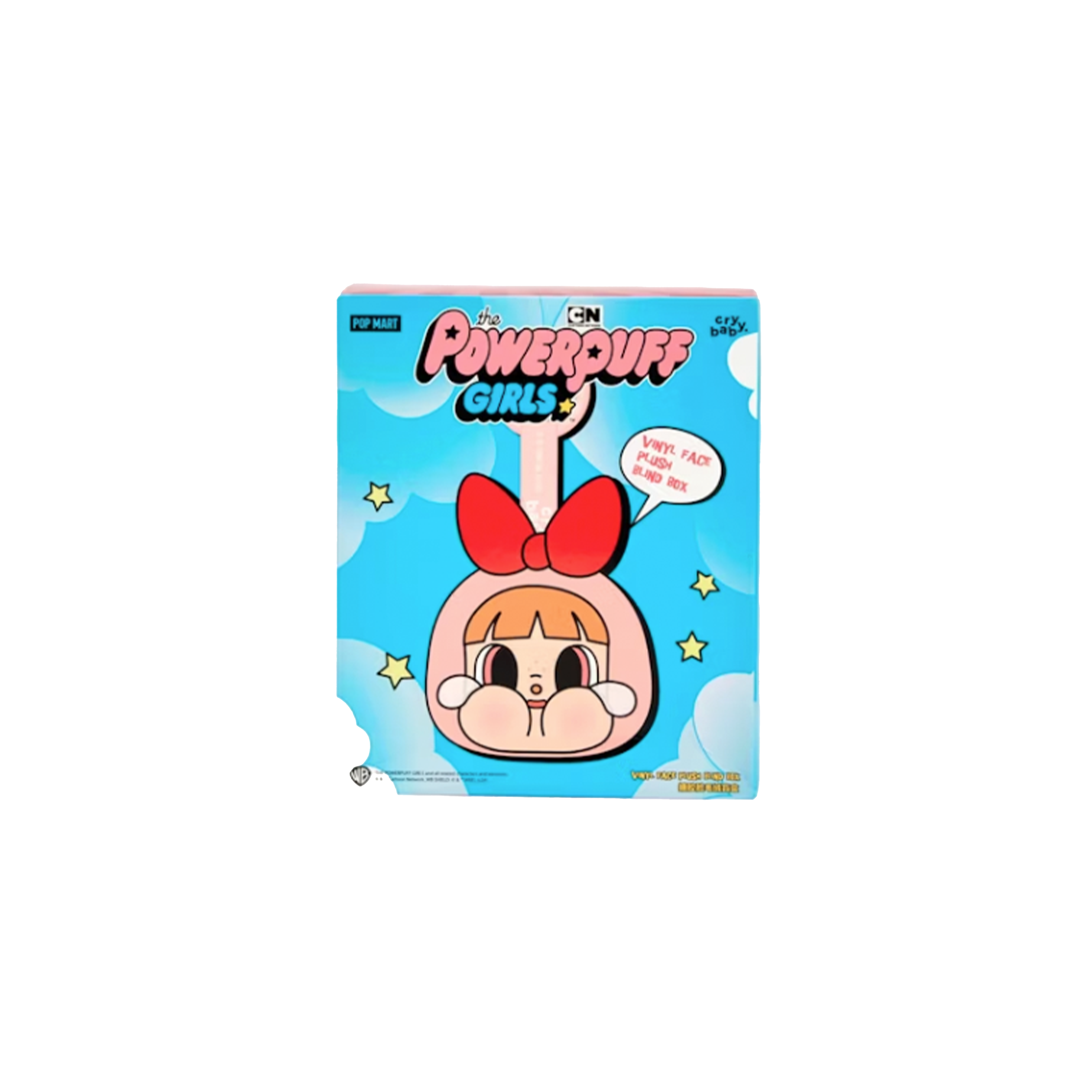 The Pop Mart CryBaby x Powerpuff Girls Series Vinyl Face Plush Single Blind Box fuses CryBaby’s signature style with the iconic trio from Townsville. Each box reveals one surprise plush, blending soft design with bold vinyl detailing for a unique collectible twist.