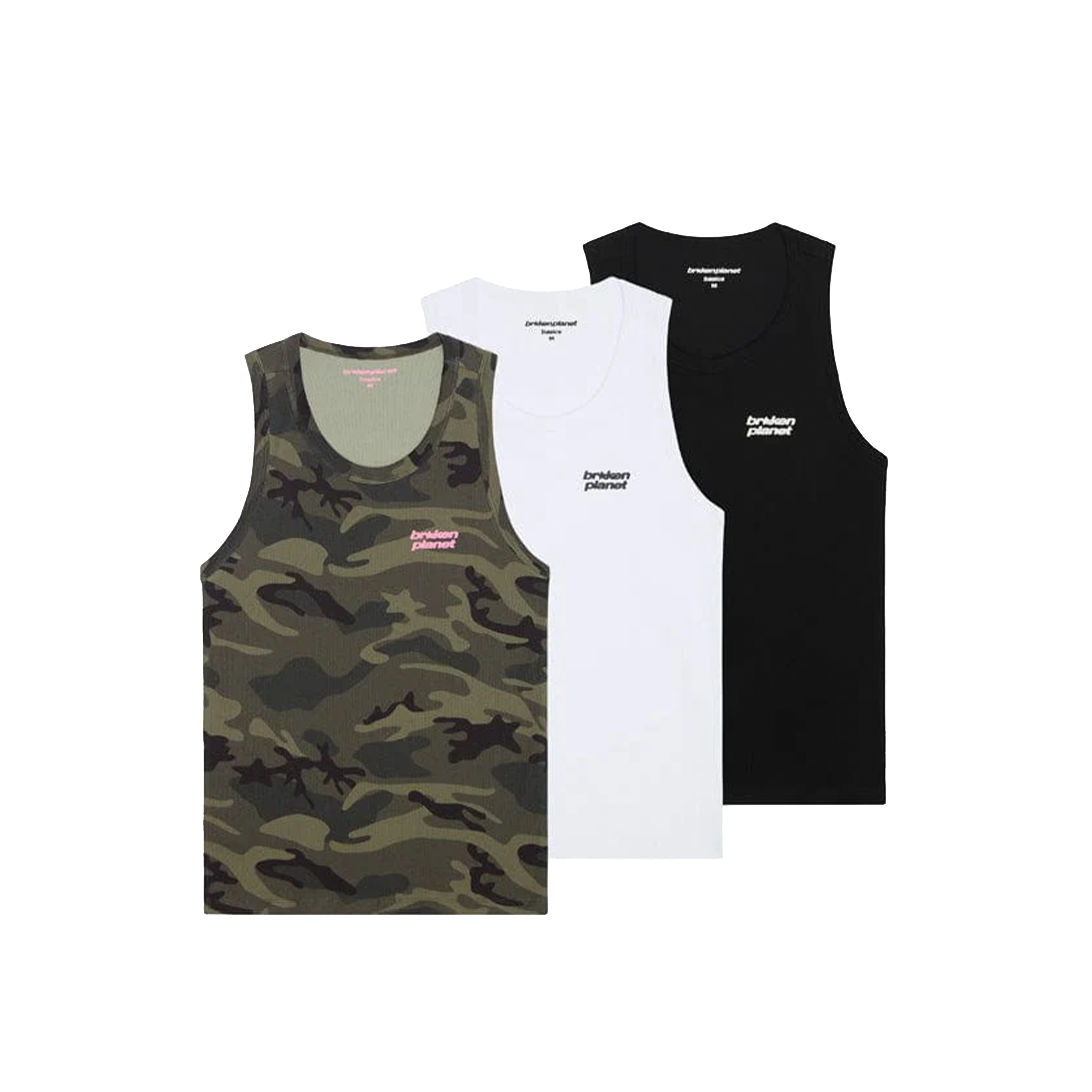 Broken Planet Men's Tank Top (3-pack) Green STAR Camo, White & Black