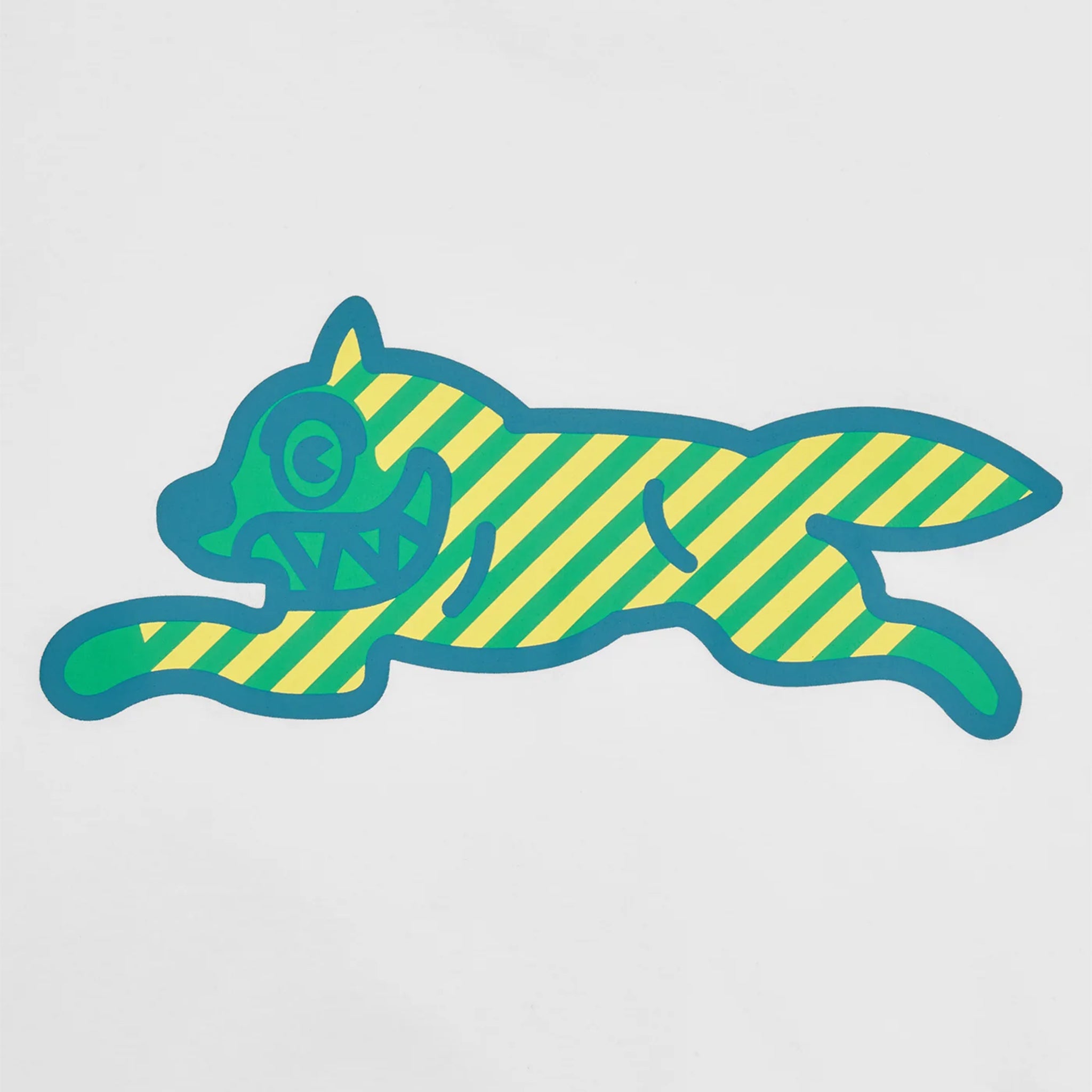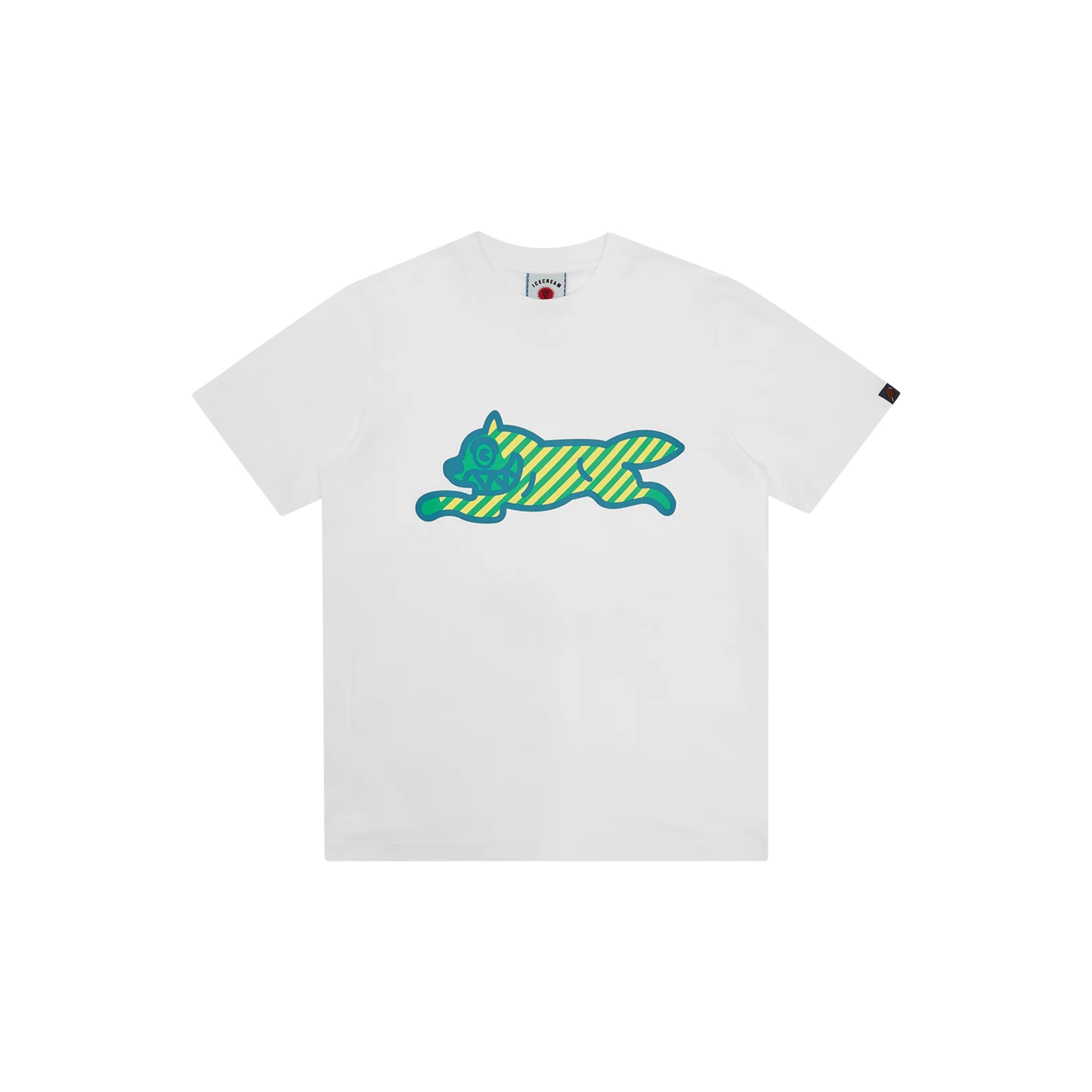 Featuring the iconic Running Dog graphic on the chest, the white base with green accents provides a fresh, vibrant look that makes the design pop. A classic crew neck and durable construction ensure comfort and long-lasting wear, making it a staple piece in any streetwear wardrobe.